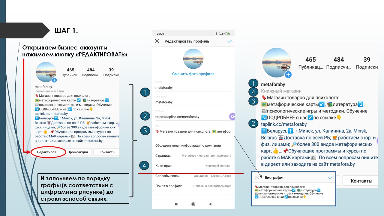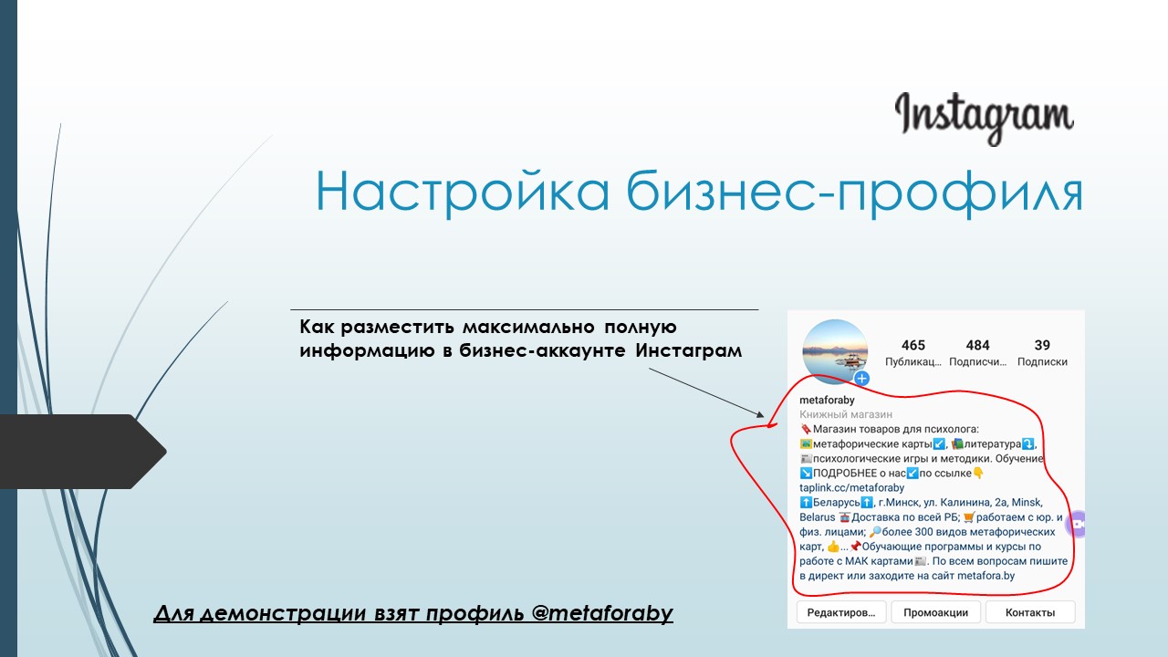 Настройка бизнес-профиля инстаграмм
